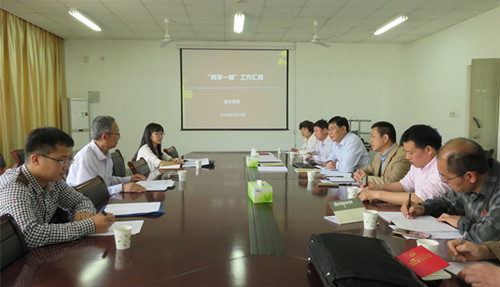 海洋学院党委书记李树安从“加强领导、周密部署”、“深入学习、创新方式”、“真抓实干、突出特色”、“学做结合、贯穿始终”四个方面汇报了学院开展“两学一做”基本情况,他还特别对学院在学习内容和方式上的创新做法以及组织工作、教学工作、学生工作、社会服务等特色工作进行了详细介绍。