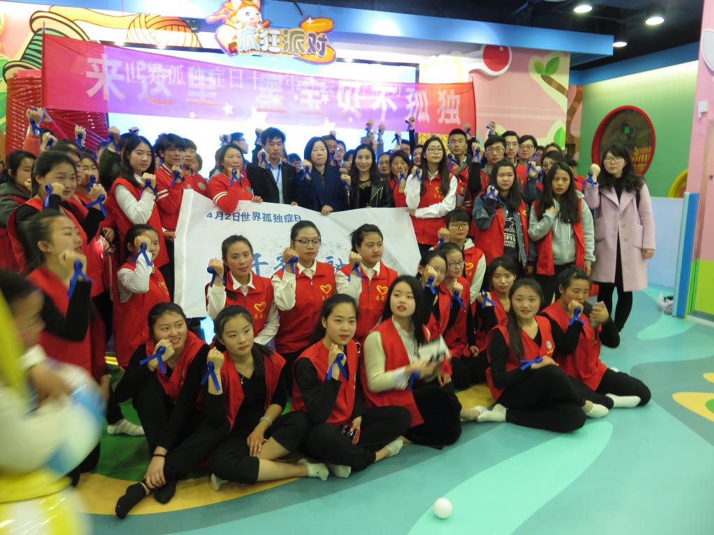 2017年4月1日,在第十个“世界孤独症日”来临之际,淮海工学院海洋生命与水产学院实验中心、学生党支部携手新起缘特教中心及连云港市工贸学校志愿者走进万达广场孩子王游乐场,为孤独症儿童举办了“关注孤独儿童,让世界充满爱”的志愿服务活动。