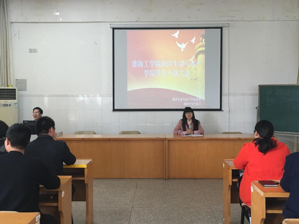 2017年3月31日,海洋生命与水产学院在海洋北楼308会议室举办了的“我爱我家”学生宿舍文明教育座谈会。学院党委副书记唐瑶、辅导员王静、陶亚楠及各班级班委出席了本次会议。