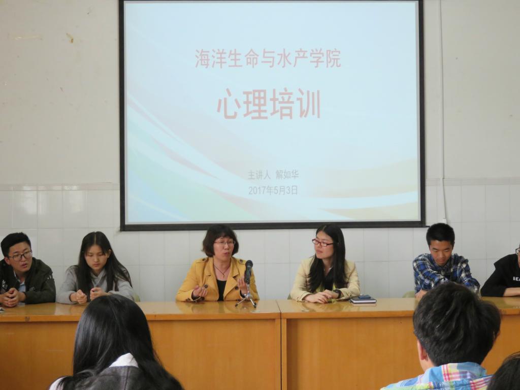 心理委员是学院心理健康教育工作最基层的力量,在心理健康知识宣传、心理健康活动开展、心理危机预防等工作中具有重要作用。为了进一步提高心理委员的业务能力,5月3日下午,海洋生命与水产学院在海洋北楼308会议室组织开展了心理培训交流活动。本次活动特邀校心理教育与咨询中心解如华副教授为嘉宾,学院辅导员、各班级心理委员及部分学生骨干参与了此次活动。