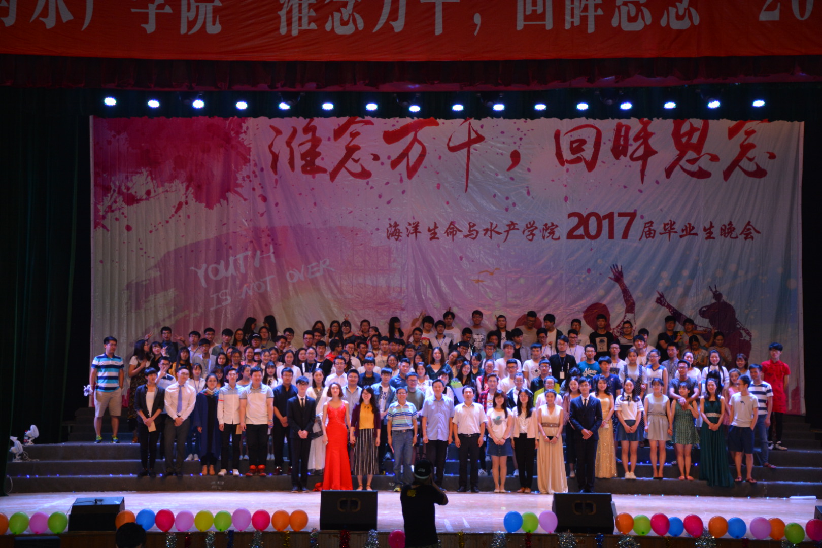 六月毕业季,浓浓师生情。6月5日晚,海洋生命与水产学院“淮念万千,回眸思念” 2017届毕业生晚会在大礼堂拉开序幕,气势磅礴的青春盛宴如期举行。海洋生命与水产学院院系领导、教师代表和全体13级毕业生参加晚会。