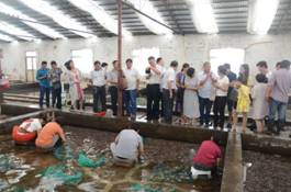 培训班合影 培训期间,学员们还实地参观了淮海工学院苍梧校区、海洋生物标本馆,并到高公岛紫菜企业育苗基地参观学习紫菜育苗技术。