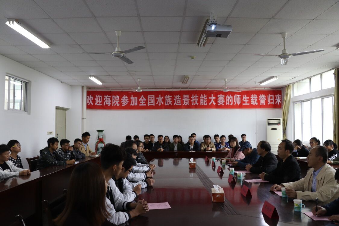 10月18日下午,海洋生命与水产学院学生参加第四届全国大学生水族箱造景技能大赛的获奖作品展示分享会在海洋南楼202会议室隆重举行。副校长王洪法、海洋生命与水产学院党委书记王波、副院长张俊杰、大赛指导教师程汉良、李信书、获奖学生代表及17级学生出席会议,会议由学院党委副书记唐瑶主持。