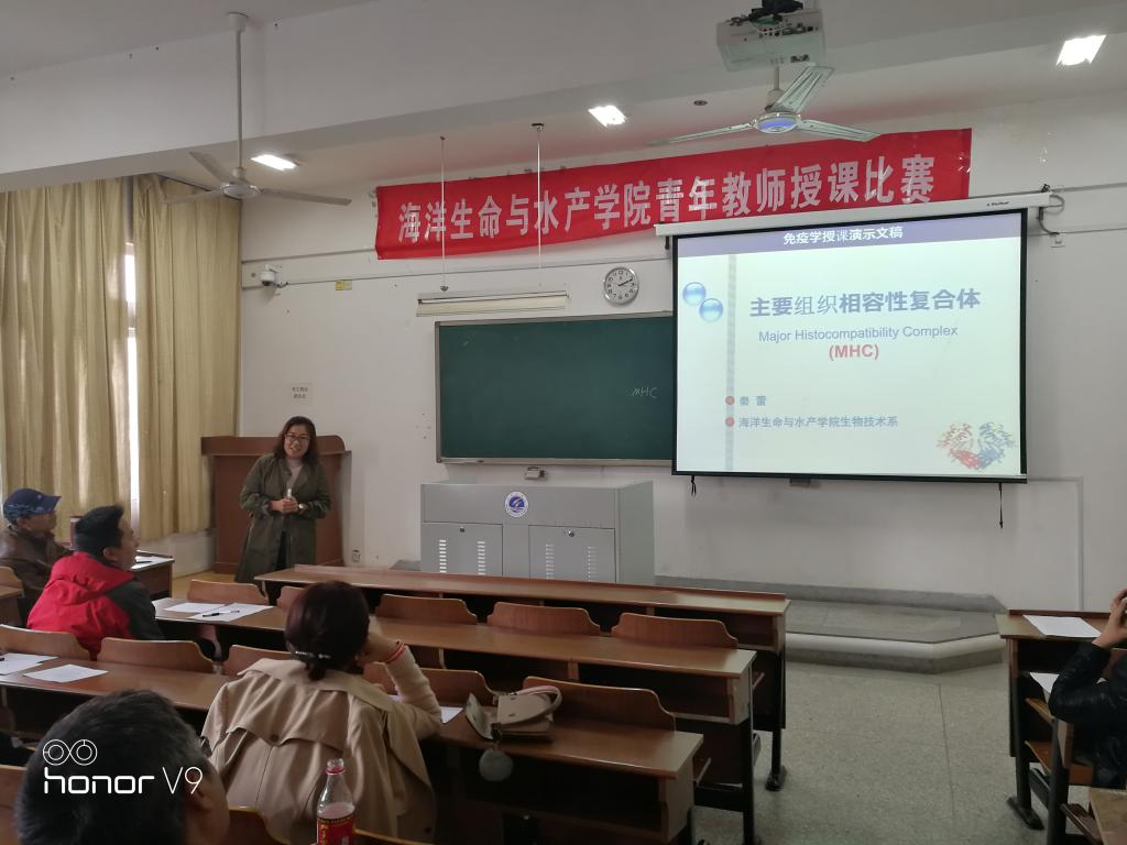 11月3日下午,海洋生命与水产学院在文通楼214教室举行“海洋生命与水产学院青年教师授课比赛”。 本次比赛经过各系推荐,共有5名教师参赛。出席比赛的有海院领导王波书记、阎斌伦院长、海院教学委员会成员。比赛前王洪斌教授讲解了授课应注意的问题,参赛的5位老师依次向在场的评委和领导展现自己精心准备的教学内容,并做了详尽的讲解。讲课过程中,教师们有的语言生动有趣、抑扬顿挫,有的充满激情、引人入胜,有的高亢激昂、启发学生思维。参赛的青年教师多媒体设备操作娴熟,板书工整,讲课内容设计合理、重点突出、理论依据充分,表现了较好的驾驭课堂和语言表达能力。海院教学委员会成员现场认真打分并公布成绩,最终评出拟推荐参加学校青年教师授课比赛的选手名单。 这次比赛激发了青年教师钻研教学业务,提高课堂教学效果的积极性和主动性,为进一步提高海院青年教师课堂教学质量打下了良好的基础。