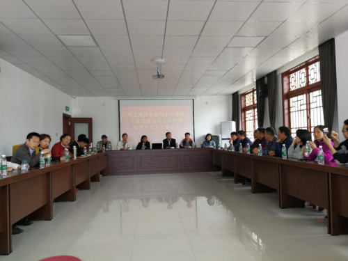 高公岛街道办事处副书记仲清首先向海洋生命与水产学院的老师们介绍了街道在紫菜产业发展及美丽乡村建设方面的情况。他表示,地方经济要实现高质发展,高校提供科技支撑是重要助推因素之一,街道对学院主动开展此次对接活动表示由衷的欢迎和感谢。接着,学院的教授们与紫菜养殖户代表们进行了交流座谈。座谈中,双方就紫菜健康养殖、紫菜精深加工以及加工废水处理、紫菜优质种质资源选育、养殖经济效益最大化等问题进行了深入的探讨和交流。海洋生命与水产学院院长阎斌伦教授、副院长张俊杰教授等对高公岛的紫菜加工和产业发展提出了一些可行建议,双方都期待能有更进一步的合作与交流。
