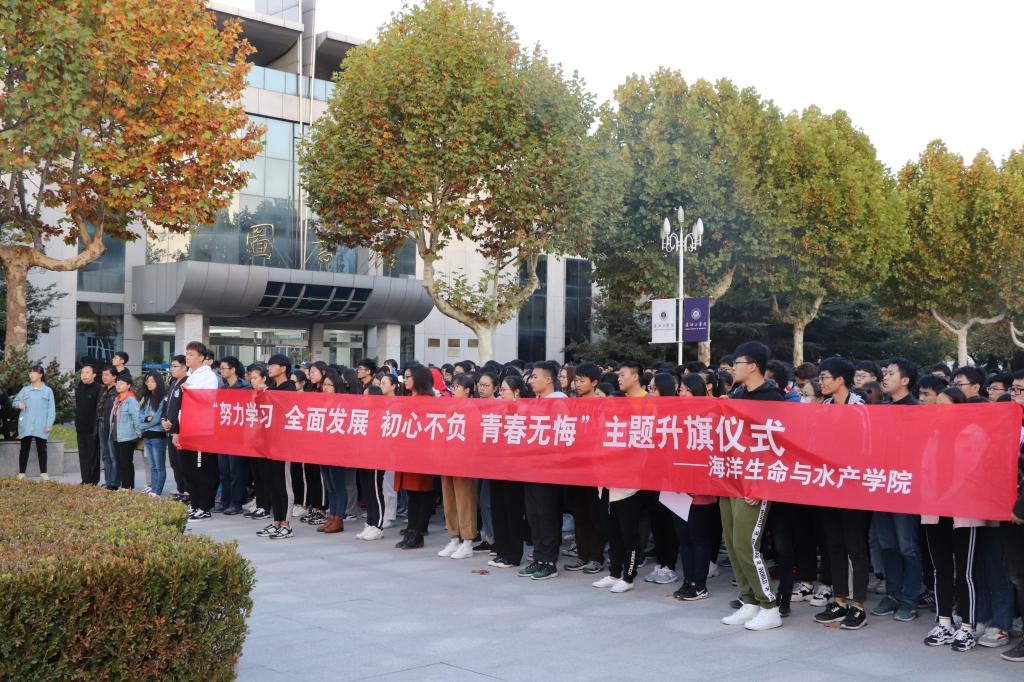 10月29日清晨,海洋生命与水产学院在主楼前广场举行“努力学习 全面发展 初心不负 青春无悔”学风建设主题升旗仪式。学院党政领导、辅导员及全体同学参加了升旗仪式。