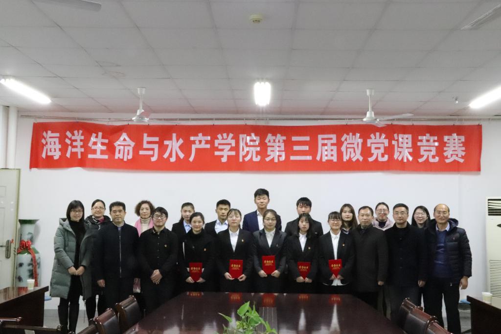 为深入学习贯彻习近平新时代中国特色社会主义思想,领会全国教育大会精神。12月12日晚,海洋生命与水产学院在海洋南楼202会议室举办了第三届学生微党课竞赛。校党委宣传部部长杨雪英、党委组织部部长纪延光、学生处副处长陈德翼、马克思主义学院副院长沈春梅、学院党委书记王波、副书记唐瑶、各支部书记、学生党员代表以及部分入党积极分子出席了比赛活动。