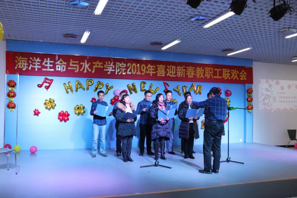 1月18日下午,海洋生命与水产学院2019年喜迎新春教职工联欢会在D区多功能厅隆重举办。学院党政领导与全体教职工一起迎新年、写对联、做游戏、话家常,欢聚一堂,共贺新春。