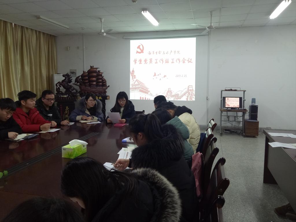 2月25日,海洋生命与水产学院学生党员工作站新学期工作会议在海洋南楼202会议室召开。学院党委副书记唐瑶,学生党支部书记王静、唐振新及全体学生党员参加会议。