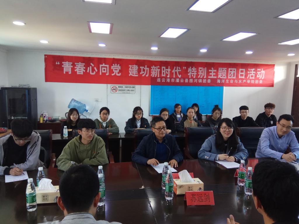 4月17日下午,海洋生命与水产学院团委一行40余人走进灌云县图河镇,与当地团委开展团建共建活动。灌云县图河镇党委委员曹立鑫、团委副书记苏远剑、海洋生命与水产学院团委书记王静、辅导员唐振新及青年团员42人参与此次共建活动。签约仪式由时树奎老师主持。