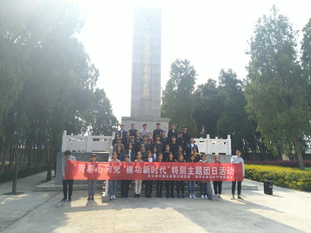 青年弘扬爱国精神,坚定理想信念。4月17日下午,海洋生命与水产学院和灌云县图河镇团员青年代表们一起在大兴沟烈士陵园开展了“青春心向党 建功新时代”特别主题团日活动。图河镇团委副书记苏远剑、海洋生命与水产学院时树奎、王静、唐振新及团员青年骨干40余人参加了活动。活动通过学院官方平台进行了同步直播。