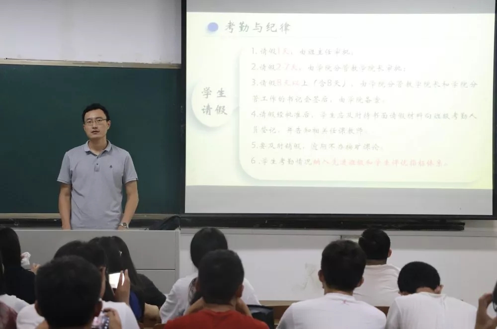 王静、唐振新结合《学生手册》向同学们解读了部分学习、生活、行为规范的指导性文件,他们结合丰富的学生工作经验,用鲜活的学生工作案例从学籍管理、学业预警、毕业与学位授予、考勤与纪律、奖学金的评定等五个方面进行了详细地讲解,对新生在校的学习、生活等方面进行了行为规范,帮助新生们更快、更全面地了解校规校纪,熟悉学籍和教务管理等相关细规。