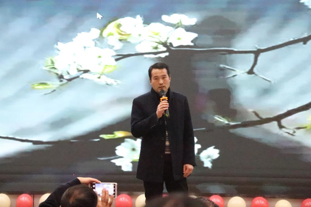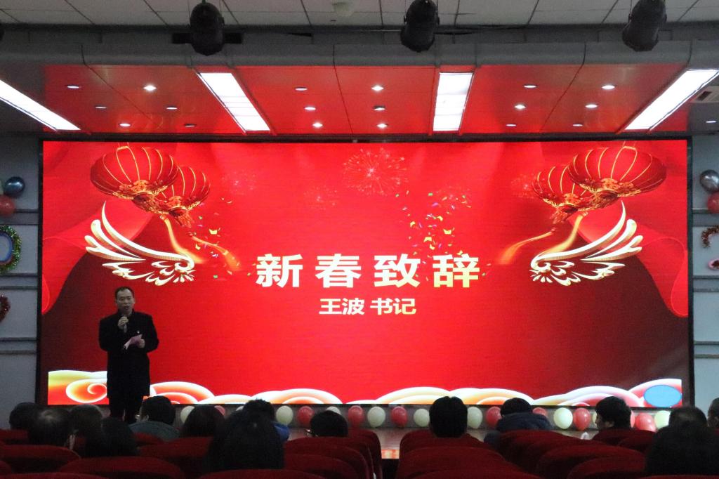 在观众们的热烈期待下,院党委书记王波致辞,他代表学院向全体教职工表达感谢并致以新年的问候和美好祝福,希望大家在2020年继续前行,为学校与学院的发展贡献力量,创造新的辉煌!