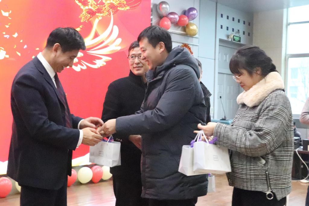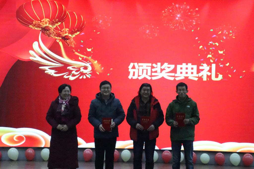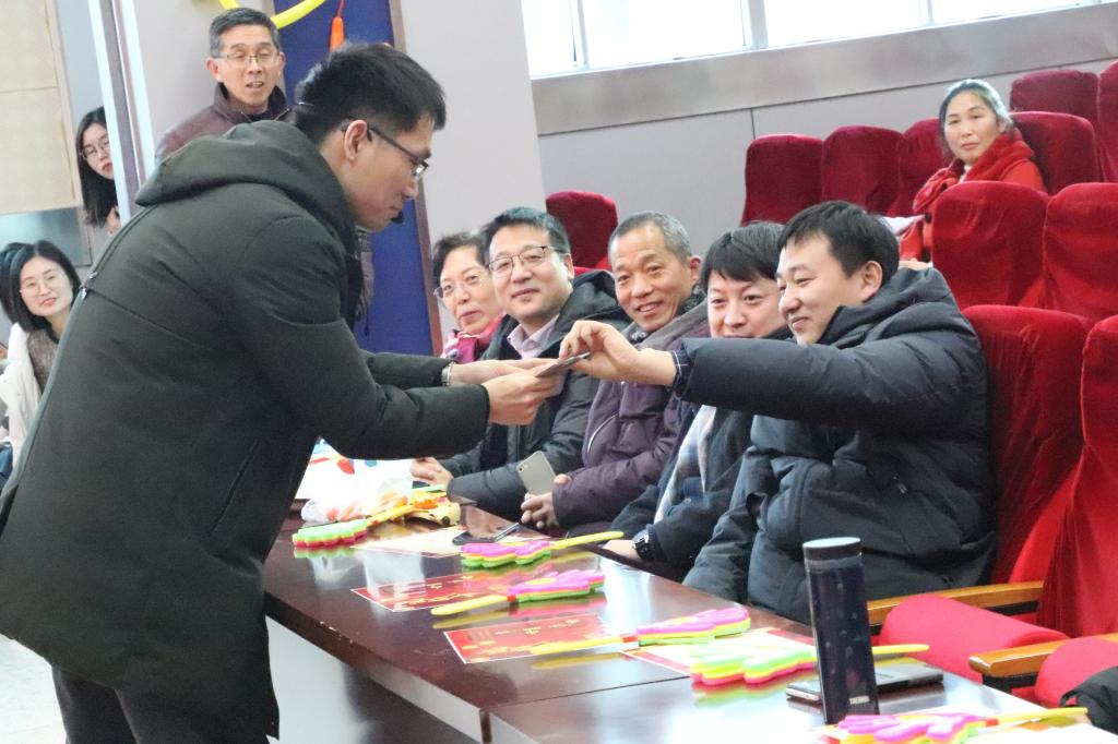 联欢会在精彩的节目之间穿插了颁奖典礼、游戏互动、幸运抽奖、现场书写对联等环节,调动了大家的积极性,增加了活动的趣味性。颁奖典礼为各位卸任的系主任颁发了纪念品,以表彰他们为学院学科建设作出的突出贡献。活动中还表彰了学院2019年度在各领域表现突出的教师——有被誉为“渔民教授”的“奖项之星”阎斌伦教授;有时刻关注时政新闻,具有丰富理论知识的“学习之星”马恒民书记;有教学充满热情,课堂亲切有趣的“教学之星”秦蕾老师……全体教职工分别参加了“心有灵犀猜词语”“看图识人考眼力”“幸运抽奖赠对联”三个环节的游戏互动,活动现场笑语不断,高潮迭起。