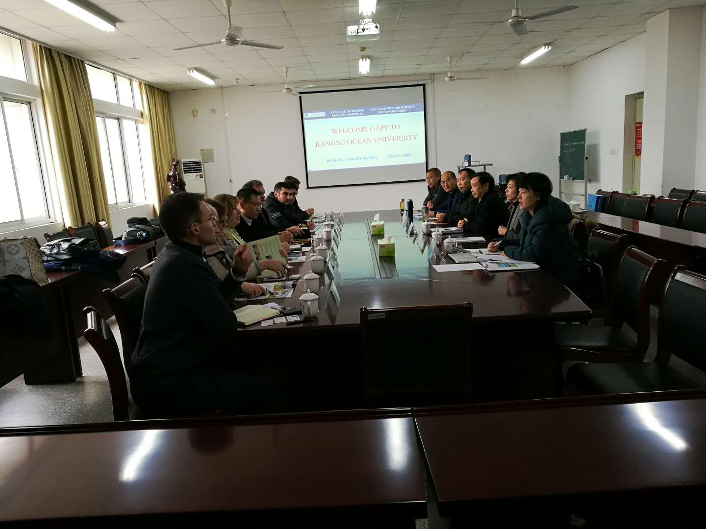,一同来访的还有江苏鼎味泰食品有限公司谭国林总经理一行。许兴友副校长与代表团就双方的产学研合作进行了深入的会谈,国际交流与合作处、海洋生命与水产学院相关负责人参加了会见及对接工作。