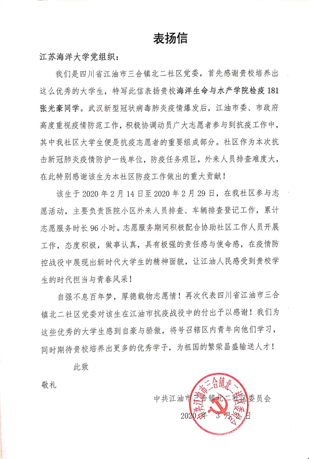 鉴于张光豪同学的优异表现,江油市三合镇北二社区特向羞羞漫画
