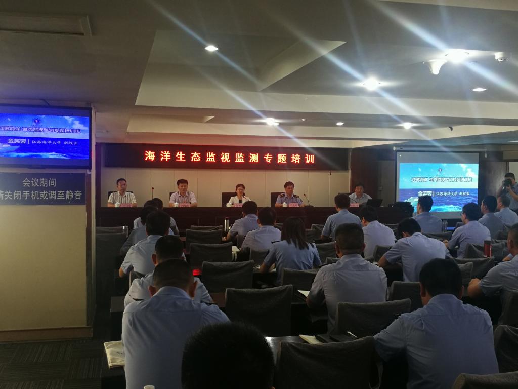 阎斌伦教授、徐军田教授、冯志华教授、吴海龙博士、周伟博士、李富田博士先后做:“浒苔绿潮及马尾藻金潮的暴发机理”、“浒苔绿潮的应急预案及治理方案”、“绿潮、赤潮监视监测、处置、资源化利用的前沿科技”、“江苏省海洋生态规划理论及务实”、“江苏省海岸带管理现状及生态修复理论”、 “浒苔绿潮的溯源”、“浒苔样品、水样的采集、保存、记录规范等”、“浒苔及其他相似绿藻(及其各个生长阶段)的识别”、“赤潮发生机理及采样规范”的专题讲座。在培训中还安排半天时间到学校参观海洋经济文化馆、海洋馆及羞羞漫画