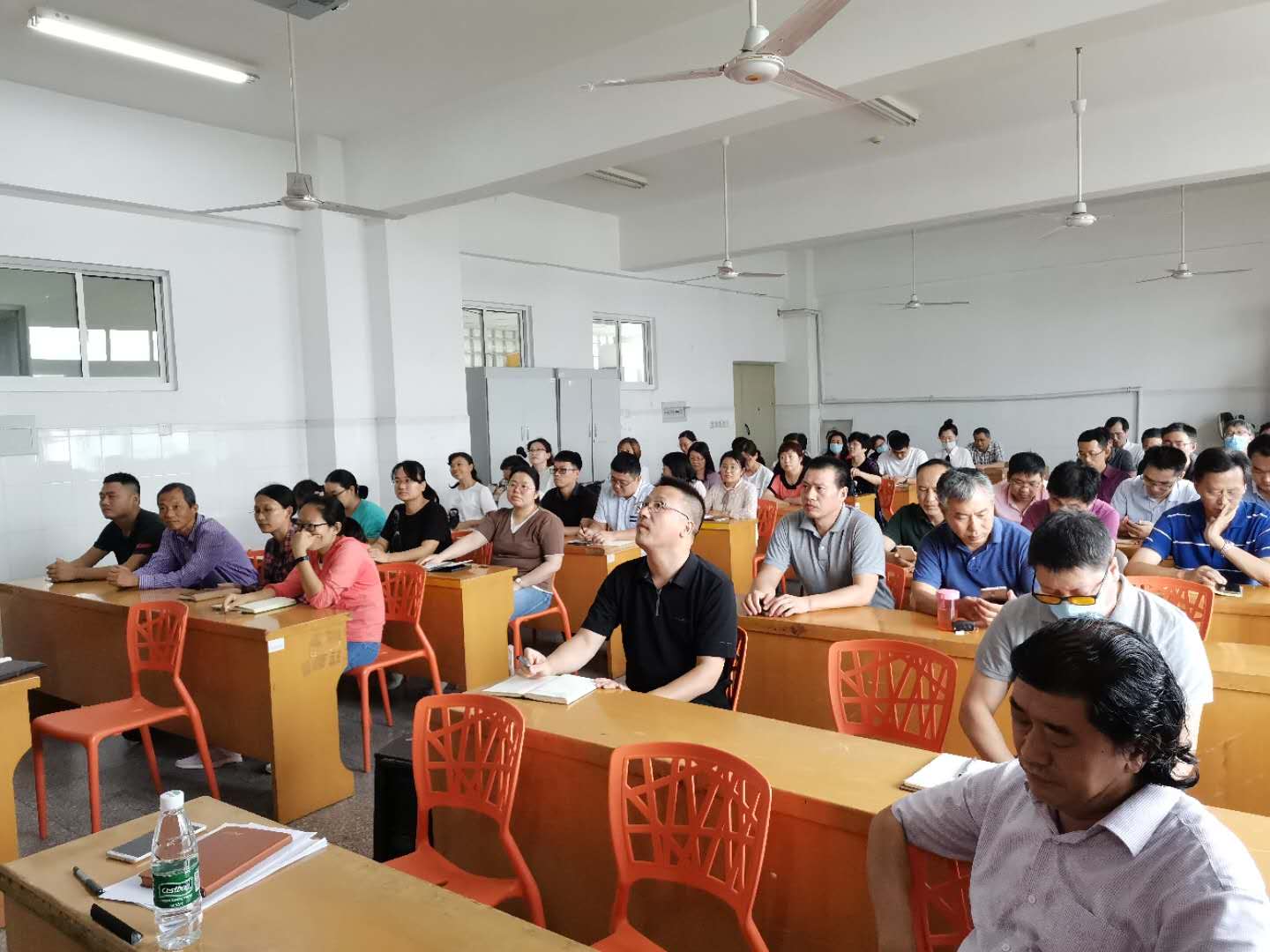 全体教师聆听了本次报告。报告由学院党委书记王波主持。