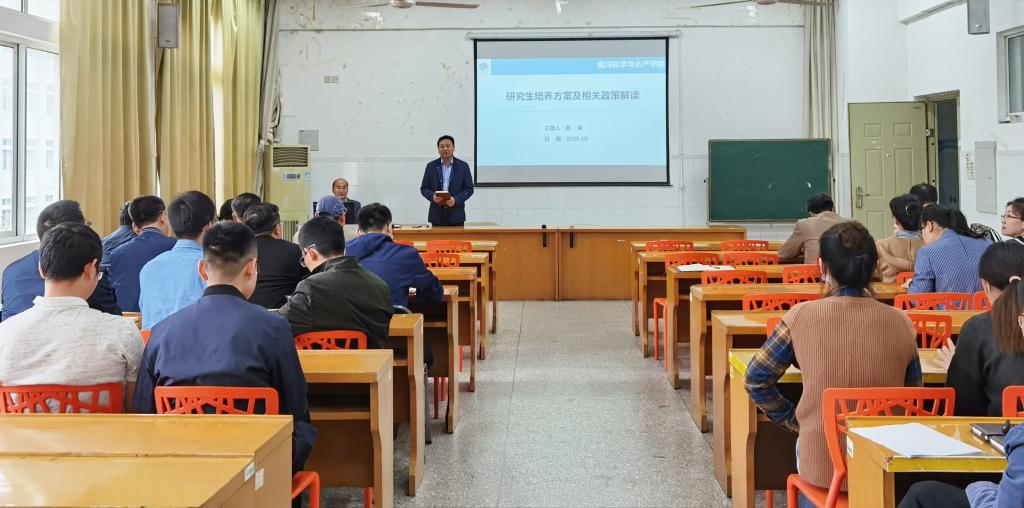 2020年研究生导师培训会在海洋北楼308会议室召开。学院党委书记王波,院长徐军田,副院长高焕,以及海洋科学和渔业发展方向的近40位导师参加了本次培训会。会议由徐院长主持。