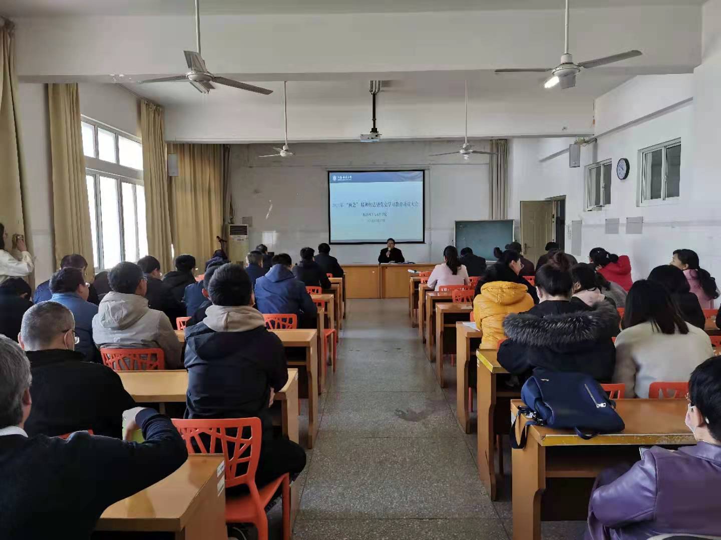 召开党史学习教育动员大会,深入学习贯彻习近平总书记在党史学习教育动员大会上的重要讲话精神,党委副书记张根友作动员讲话,徐军田院长主持会议,全体教师参加会议。