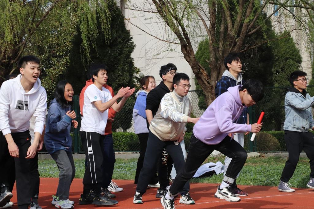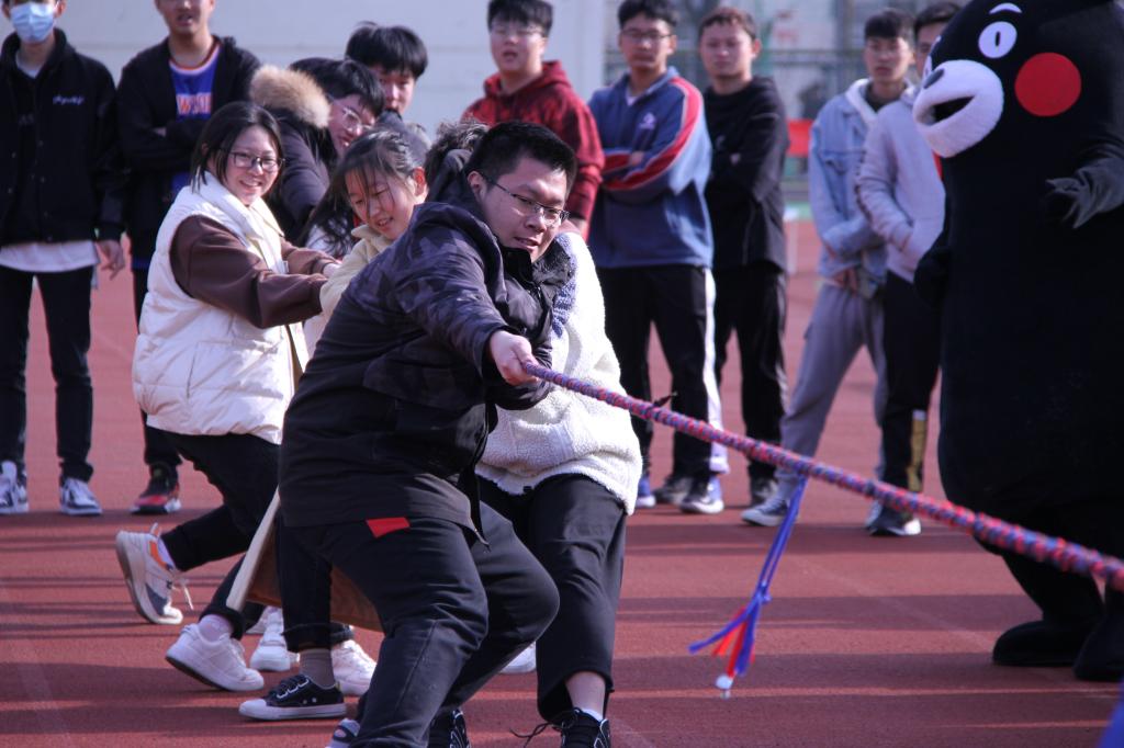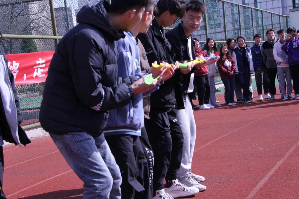 随后比赛正式开始。比赛分为“乘风接力”、“拔河”、“奔向明天”、“乒乓球接力”、“飞镖投掷”、“绳采飞扬”六个趣味项目。首先是“奔向明天”——五人六足赛,大家迈着默契整齐的步伐,肩并肩,喊着一致口号齐心协力奔向终点。接着便是乒乓球接力,八位同学彼此传球,用U型槽轮转接力将球稳稳地放入指定位置;令人激动的则是飞镖投掷环节,一队四人,每人五标,大家各展神通,期间一位同学更是以潇洒动作直中两记九环,赢得大家欢呼喝彩;随后“乘风接力”——10乘80米接力跑,风一般的速度,同学们奋力冲刺,挥洒的不仅是汗水,更是青春的激昂。还有“绳采飞扬”跳绳项目、拔河比赛无不是拼的集体凝聚力和协作精神。整个比赛的氛围热烈又不失轻松愉快,参赛的同学们大展身手,全身心的投入到比赛当中。