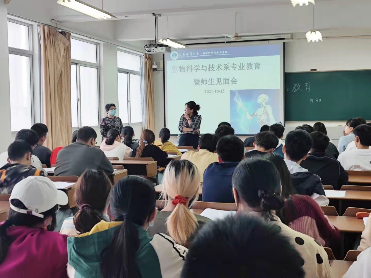 2021年10月13日下午,生物科学系生物技术专业2021级专业教育暨师生见面会在通灌校区明德楼406教室成功召开,生物科学系全部教师和生技专业78名2021级同学出席了本次会议,会议由新生班主任秦蕾副教授主持,学院院长徐军田、副院长高焕和冯志华参会并讲话。