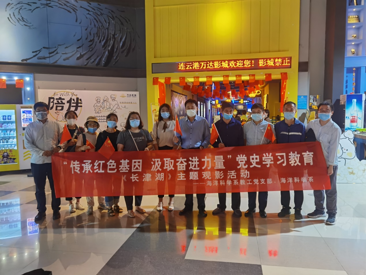 为庆祝中华人民共和国成立七十二周年、中国人民志愿军抗美援朝出国作战七十一周年,进一步扎实推进党史学习教育走深走实,进一步筑牢教师政治忠诚、信念坚定的思想根基,深入学习贯彻习近平总书记考察重要讲话精神,海洋科学系于2021年10月13日下午组织全体党员教师开展“传承红色基因汲取奋进力量”党史学习教育重大革命历史题材影片《长津湖》的主题观影活动。海洋科学与水产院长徐军田、海洋科学系全体教师参加了本次活动。