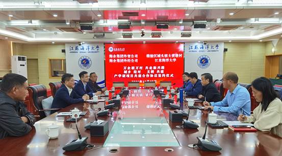 副院长高焕分别与江苏省对外经贸股份有限公司党总支副书记张强、江苏海外集团对外经济技术合作有限公司办公室主任谢冲、江苏省连云港市赣榆区城头镇大黄墩村党支部书记高峰签署了四方合作协议,同意整合优势资源、共同推进赣榆区城头镇大黄墩村“稻渔”种养示范项目的推进工作。