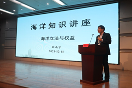 随后,姬南京博士进行了海洋立法与权益的讲座,让我们明白海洋也是有政策与法规的。最后,王攀攀博士展示了海洋丰富的资源、海洋环境问题和他自己的研究方向,让我们了解目前海洋资源的现状并提醒我们要尽自己一份力去保护海洋。