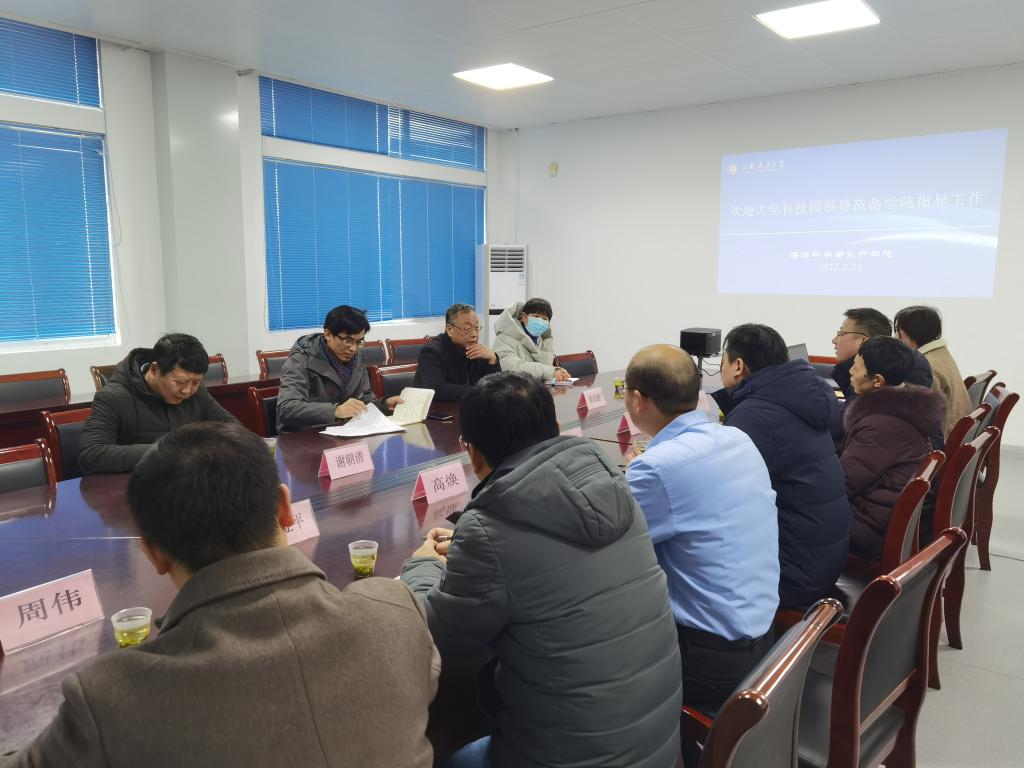 会上,杨天华书记对大学科技园主任姜兵一行的到来表示欢迎,学院历来重视科技成果转化工作,不断探索“产学研”模式,一直致力于促进成果转化,希望以这次交流为契机,加强学院与大学科技园多方面的合作。随后,姜兵主任介绍了大学科技园的基本情况、科技园的职能和未来发展展望,并就科技园创新资源集成、科技成果转化、科技创业孵化、创新人才培养、促进开放协同发展等方面进行了重点介绍,希望与学院加强合作,一起做好创新创业人才培养,推进学校科技发展和国家大学生科技园建设。