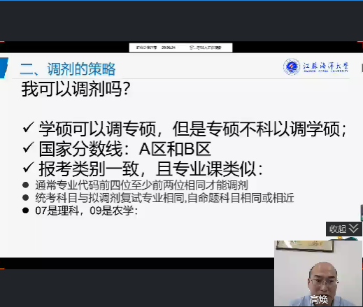 会议伊始,高焕从近三年考研报名率、各专业报名人数与录取数量等方面详细分析了目前的考研形势,随后围绕复试的流程、内容、注意事项等对考研复试进行了深度剖析,并就调剂相关注意事项进行了耐心解答。最后,高焕给出三点复试建议:端正复试态度、提前储备知识、做好信息沟通,并预祝每位考研学子都能取得理想的成绩,成功到达梦想的彼岸。