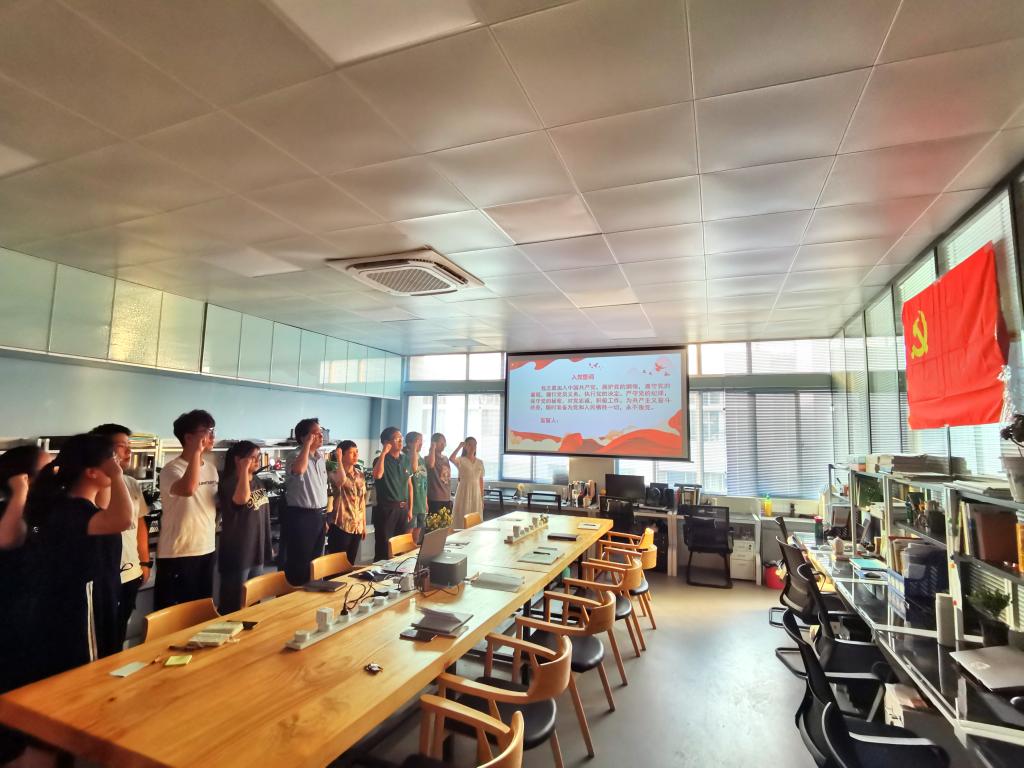 会议最后,新成立的党支部全体党员在马静同志的带领下重温了入党誓词,与会党员纷纷表示将继续发扬党的奋斗精神,以身作则,创先争优,发挥带头作用,影响和带动身边同志。