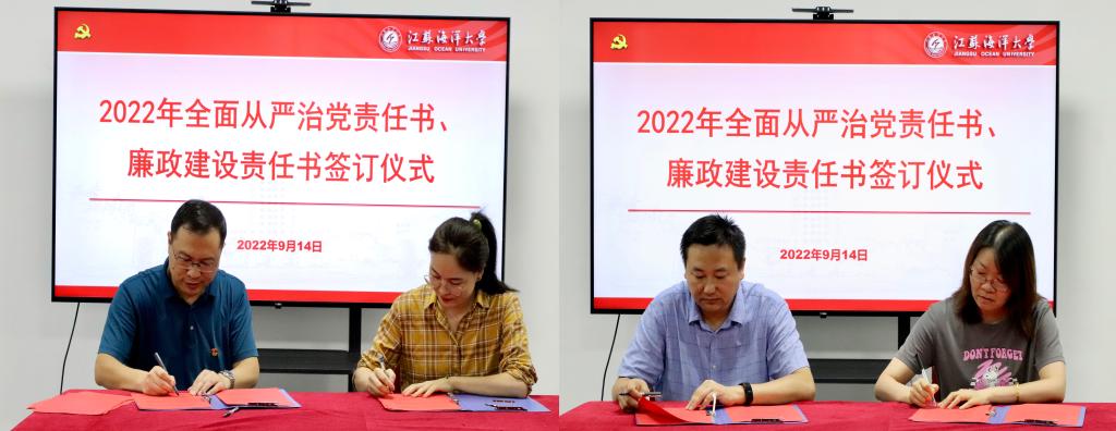 学院党委书记黄金虎与班子中的党员成员、各支部书记现场签订了《全面从严治党责任书》,与班子中的民主党派成员签订了《廉政建设责任书》;徐军田院长分别与各系(中心)、室等主要负责人签订了《廉政建设责任书》。