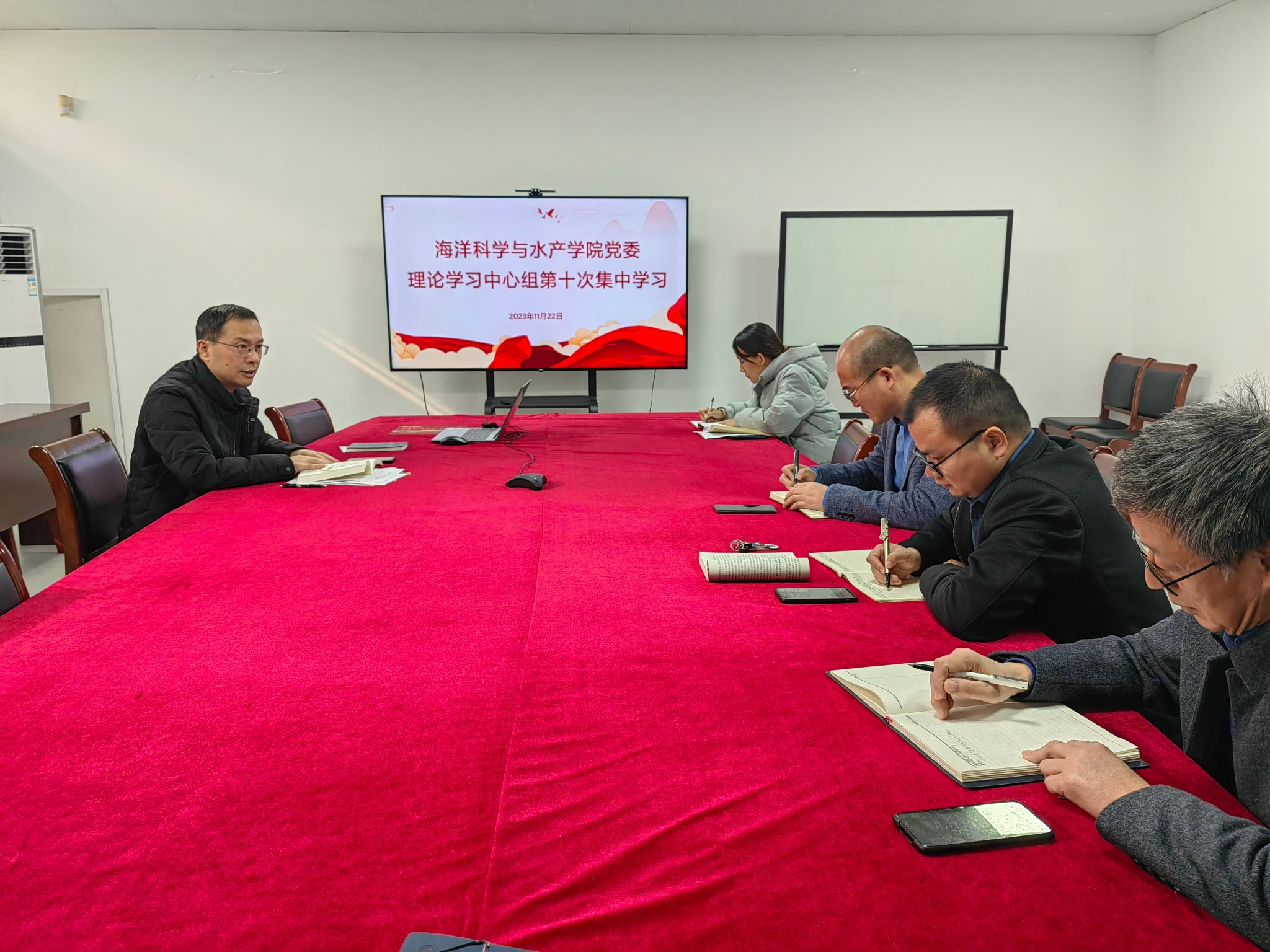 11月22日上午,学院在海洋南楼211会议室召开党委理论中心组第十次集中学习暨意识形态工作专题会,学院党政班子成员、院党委委员参加会议。会议由学院党委书记黄金虎主持。