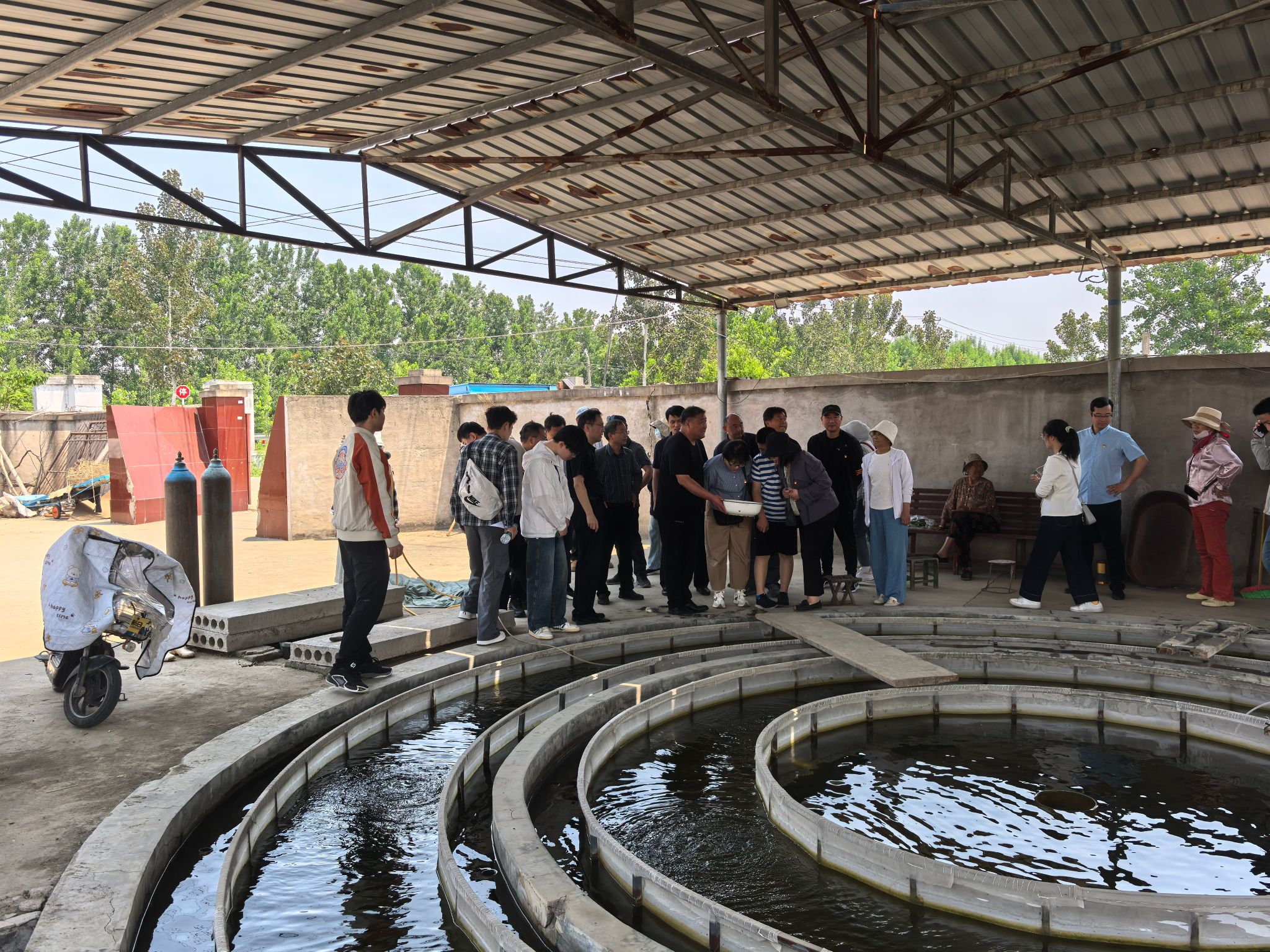 随后,党员同志们实地考察了新沂市苏北水产养殖有限公司,深入了解当地水产养殖品种、技术应用、产业链发展等实际情况。博士党员们结合自身专业特长,与企业负责人、一线养殖员工进行了深入交流,针对水产良种繁育、生态养殖模式、渔产品精深加工等领域提出了专业建议。学院党委与新沂市水产养殖场党支部开展了结对共建座谈会,明确了‘组织共建、资源共享、人才共育、技术共研’的四大合作方向,并初步搭建起长期稳定的合作框架。
