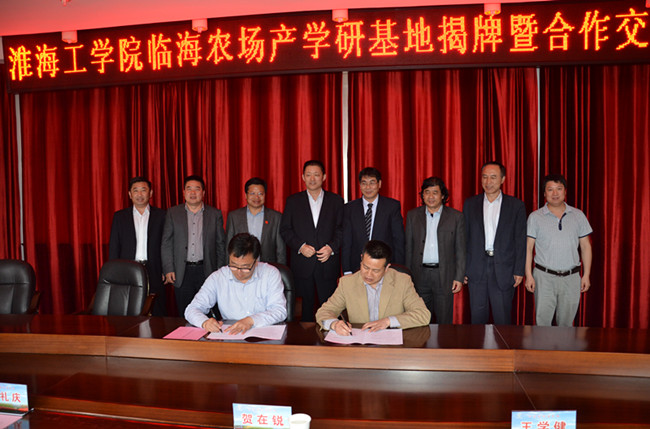 4月22日下午,海洋学院与江苏省临海农场产学研基地共建及交流活动在农场场部东一楼会议室举行。海洋学院院长阎斌伦与江苏省临海农场党委书记、场长贺在锐共同为基地揭牌。海洋学院党委书记李树安、副书记马志同及水产养殖系三位负责人一起出席了交流活动及揭牌仪式。