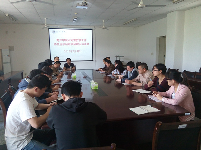 2016年5月4日上午,海洋学院在海洋南楼202会议室举行研究生教学工作师生座谈会暨研究生学风建设座谈会。海洋学院党委副书记马志同、副院长申欣、部分研究生任课老师、2014级和2015级研究生代表参加了座谈会。座谈会由申欣主持。