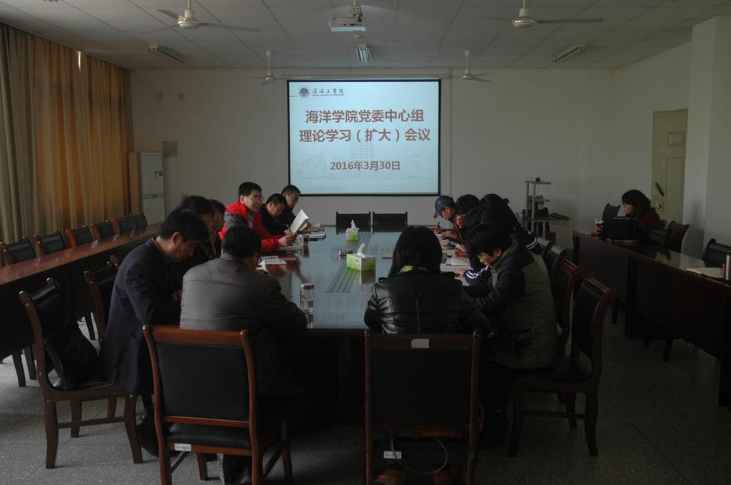 3月30日下午,海洋学院党委中心组举行理论学习(扩大)会议。海洋学院党委委员、支部书记、各系(中心)、办公室正副主任参加学习。海洋学院党委书记李树安主持学习。