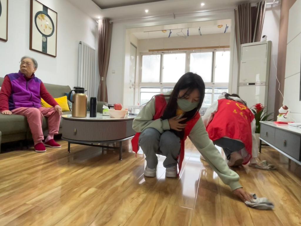 程伟基同志退休前是原江苏盐业学校校长,他一生奉献教育事业,曾荣获江苏省轻工业厅劳动模范称号。程伟基同志向学生们讲述了他们一代人在中华人民共和国成立初期克服艰难困苦、全力发展教育事业的感人故事。程老师始终奋战在教育第一线,将教书育人作为自己的首要任务,也见证了中国教育的发展与兴旺。通过程老师的讲述,学生志愿者们感受到中国教育事业发展的艰辛,也明白了拥有现在舒适的学习环境是多么的来之不易。活动最后,志愿者们积极帮助老人做家务、打扫卫生,用实际行动表达对老同志的敬仰与感谢。