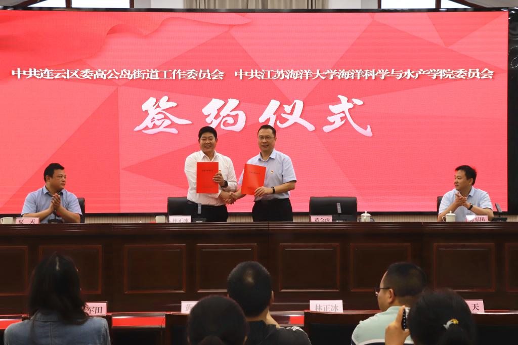 党委书记黄金虎与高公岛街道党工委书记林正冰在党建共建协议上签字,确认双方党建经验交流、产业发展支持、志愿服务开展、实践基地建设等方面的规划和具体工作安排。