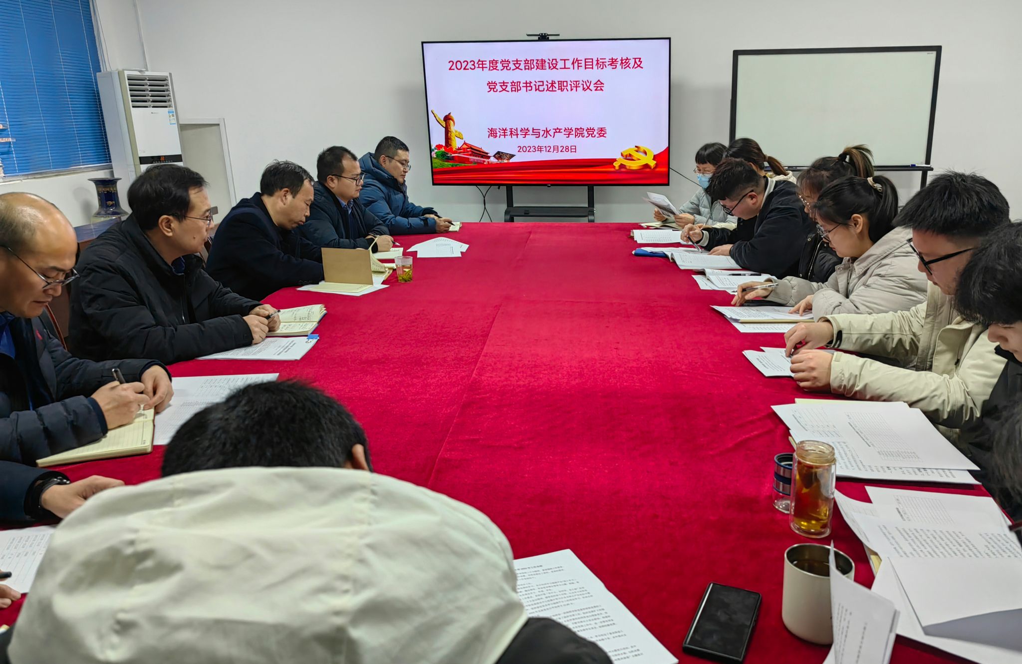 党委召开了2023年度党支部建设工作目标考核及党支部书记述职评议会,进一步加强党支部书记队伍建设,压实党建工作主体责任、提升基层党建工作质量。党委宣传部部长王波、学院领导班子成员、全体支部书记参加会议,学院党委书记黄金虎主持会议。