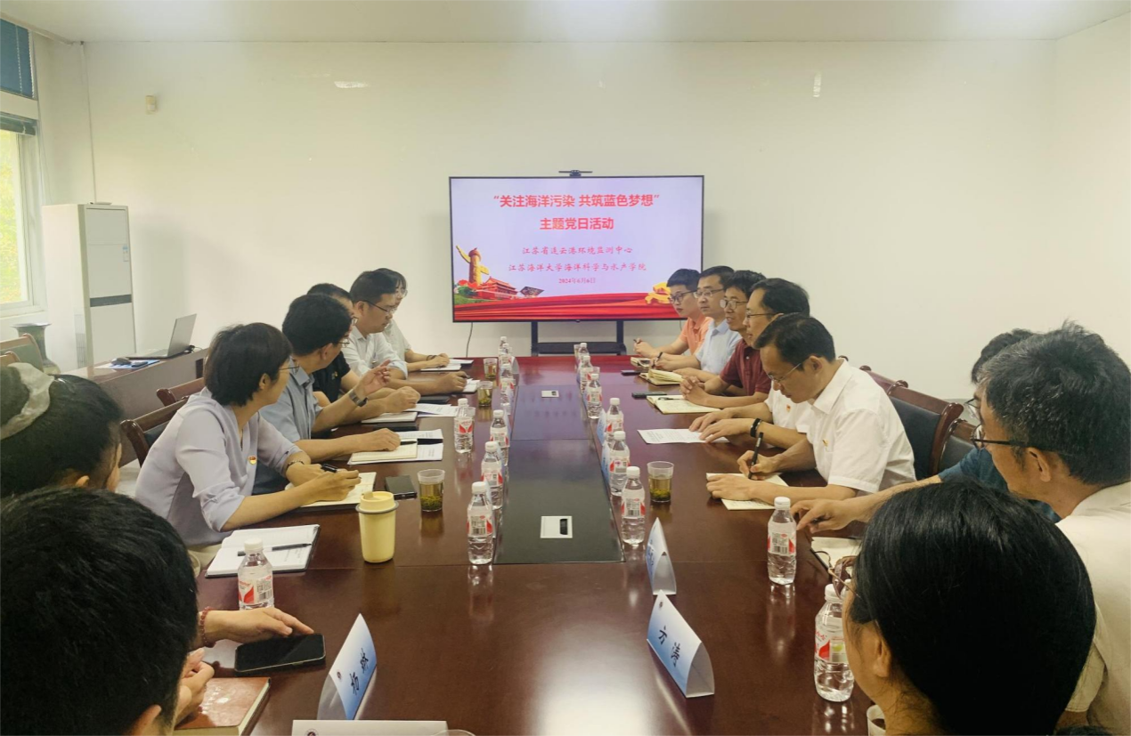 党委书记黄金虎、副院长冯志华、海洋资源与环境系全体党员和教师,江苏省连云港环境监测中心副主任贺心然与中心党支部成员参加活动。