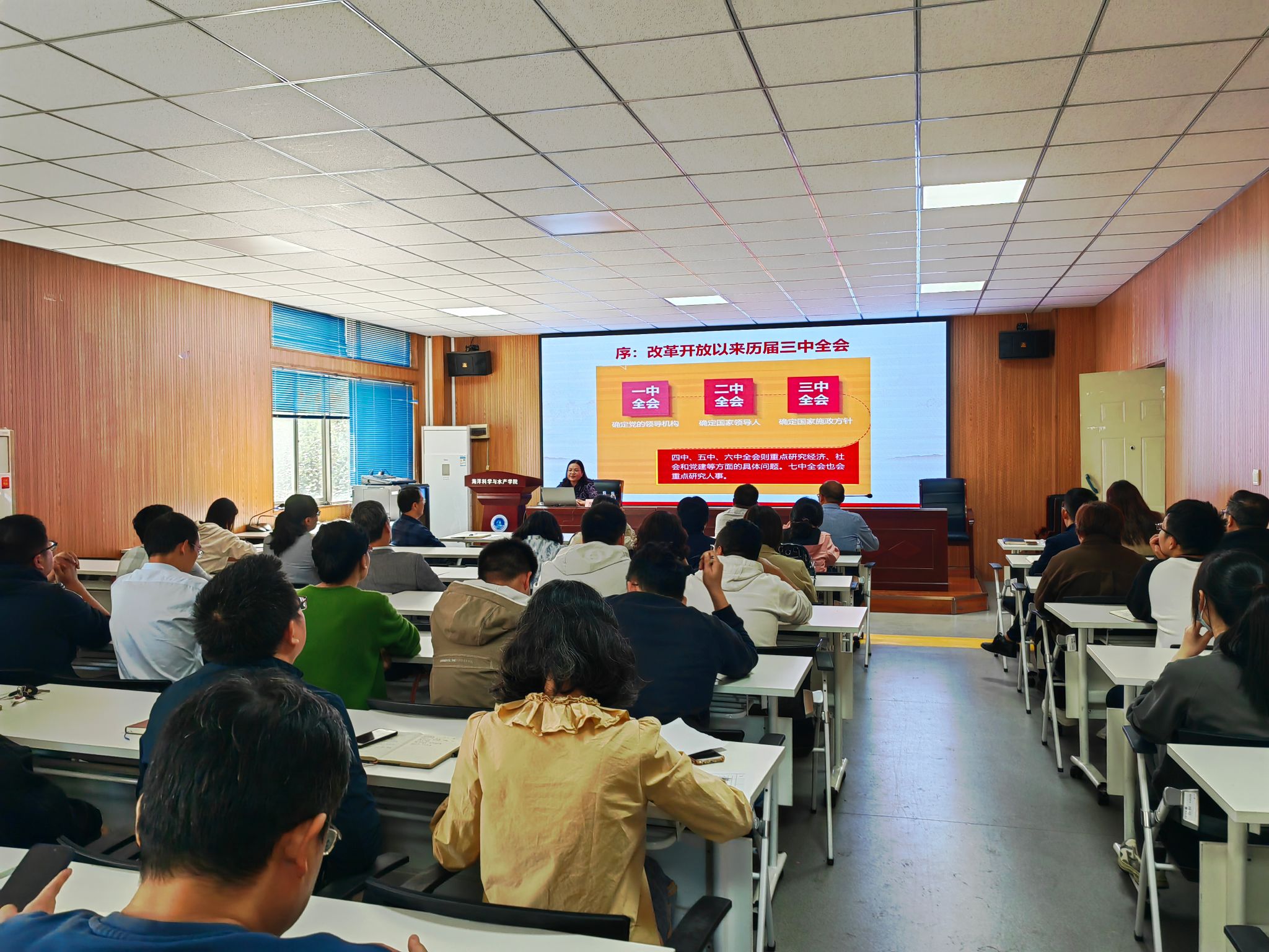 为深入学习领会党的二十届三中全会精神和习近平总书记重要讲话精神,努力把握其思想精髓、核心要义和实践要求,做到学深学透、入脑入心。10月9日下午,校宣讲团成员、马克思主义学院院长沈春梅为全体教职工作专题宣讲,学院党委书记黄金虎主持报告会。
