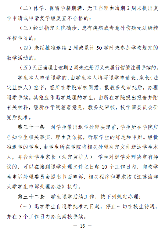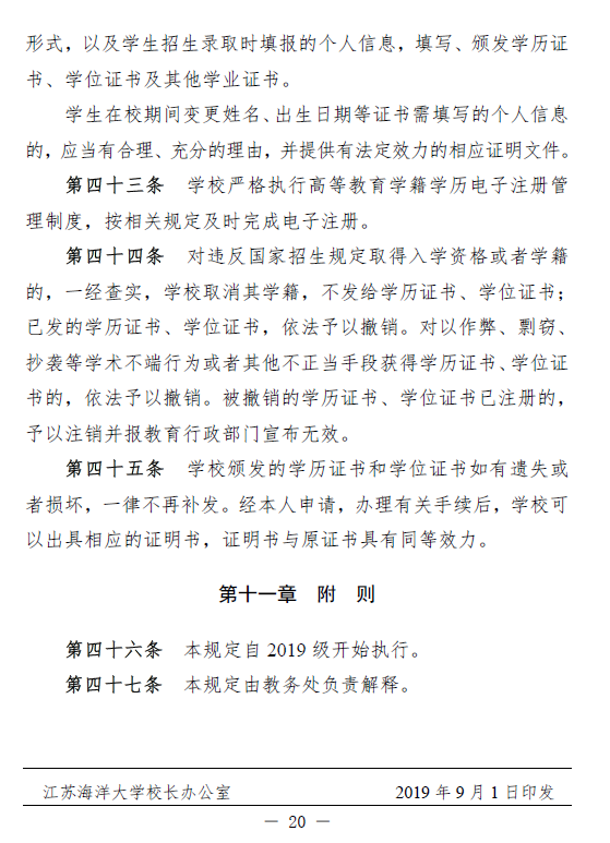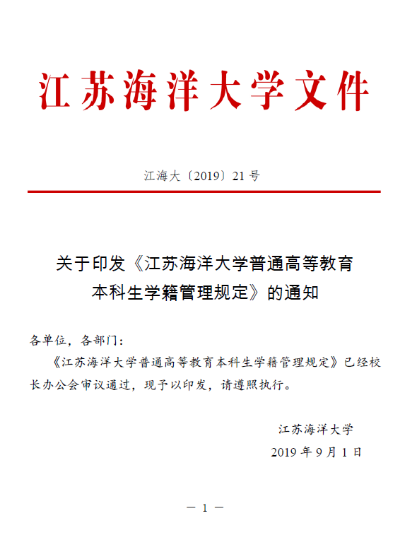 江海大〔2019〕21号(关于印发《羞羞漫画 普通高等教育本科生学籍管理规定》的通知)