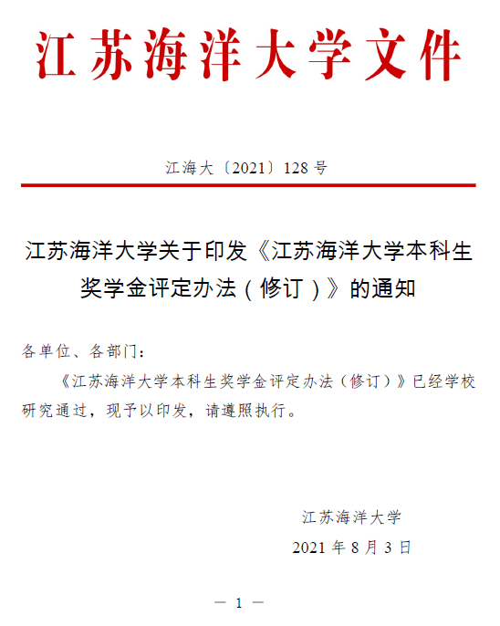 江海大〔2021〕128号 羞羞漫画 关于印发《羞羞漫画 本科生奖学金评定办法(修订)》的通知