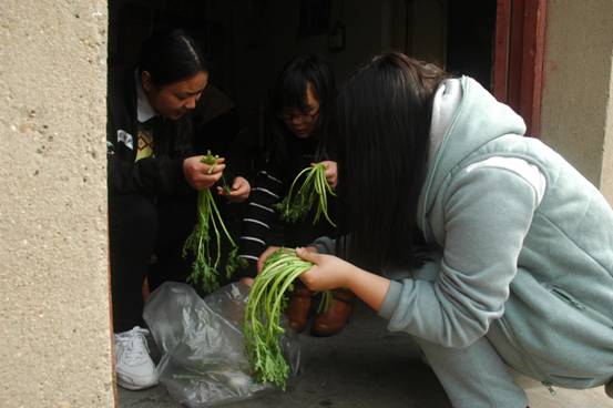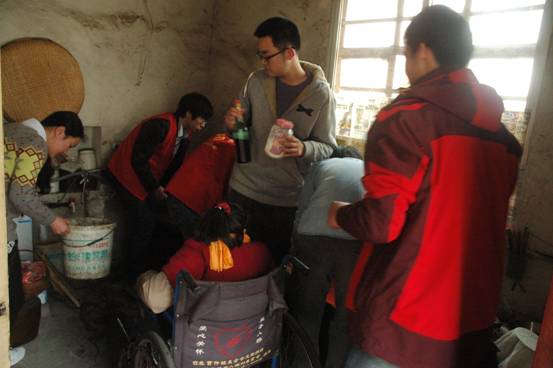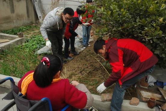 厉树青是一位高位截瘫的患者,生活困苦,无固定生活来源。志愿者们一到厉阿姨家,就自发的帮阿姨干些力所能及的事情,女生择菜,淘米,做饭。男生锯柴火,建小型大棚,浇菜园,换置新的电脑桌。阿姨热情地欢迎同学们的到来,高兴地说:“以前都是我一个人在家,今天大家来阿姨非常高兴,家里终于有了生机。”