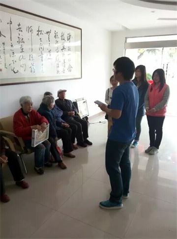 2015年4月18日下午2点,海洋学院检疫141班的同学们怀揣着“服务之心,关爱之心”走进花果山福利院,在福利院举办了以“我们都一样”为主题的敬老志愿服务团日活动。