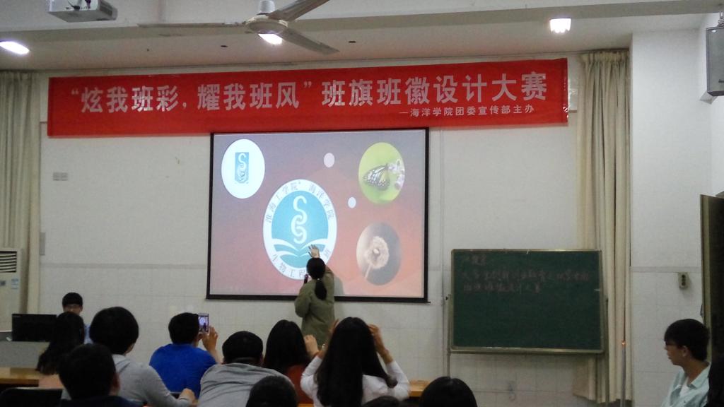 2016年5月22日,海洋学院“炫我班彩,耀我班风”班旗班徽设计大赛决赛在海洋北楼308成功举办。海洋学院辅导员及来自的14、15级的各班级同学参加此次大赛。经过初赛激烈地角逐,成功晋级决赛的8个班级分别是生技151班、生技152班、食品151班、水科152班、生工41班、海科152班、生技141班和海环151班。
