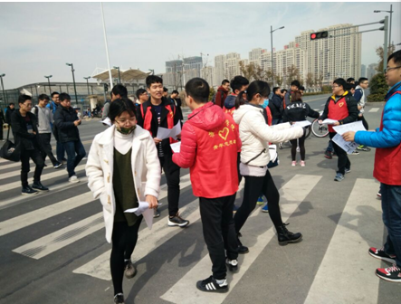 2017年3月3日上午8时,海洋生命与水产学院团委在连云港淮海工学院东区宿舍十字路口举行了交通文明宣扬活动,参与这次活动的是海洋生命与水产学院团委实践部全体成员。