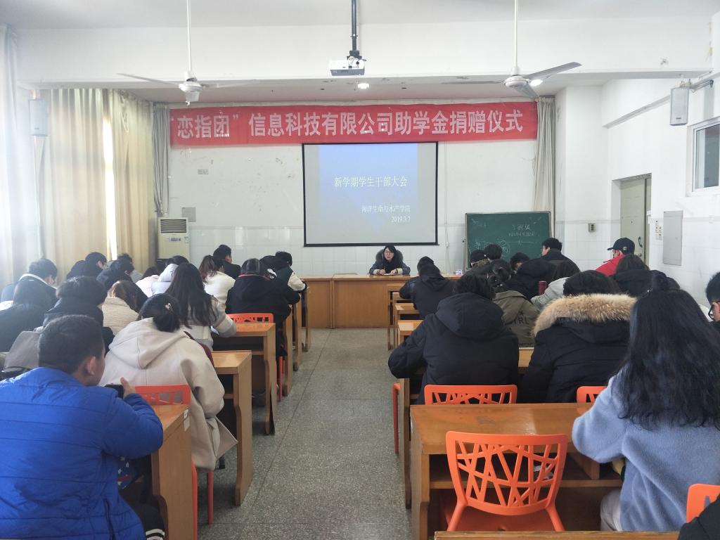 3月7日中午,新学期学生干部大会在海洋北楼308成功召开,海洋生命与水产学院团委、学生会等主要学生干部参加会议,会议由团委书记王静主持。